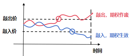 障碍期权一般归为两类:敲出期权和敲入期权。敲出期权是当标的资产价格触及一个特定障碍水平时,该期权作废;敲入期权当只有当标的资产价格触及一个特定障碍水平时,该期权才有效。需要注意的是,障碍期权在期限内的任意观察点触及障碍水平,期权状态就会发生改变,因此它是路径依赖的。