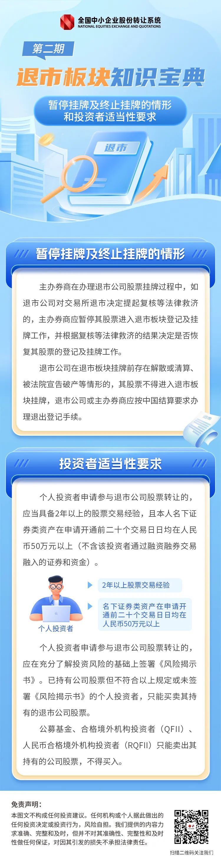 投教分享 |【新三板投教】第二期:暂停挂牌、终止挂牌的情形和参与退市公司股票转让的投资者适当性要求