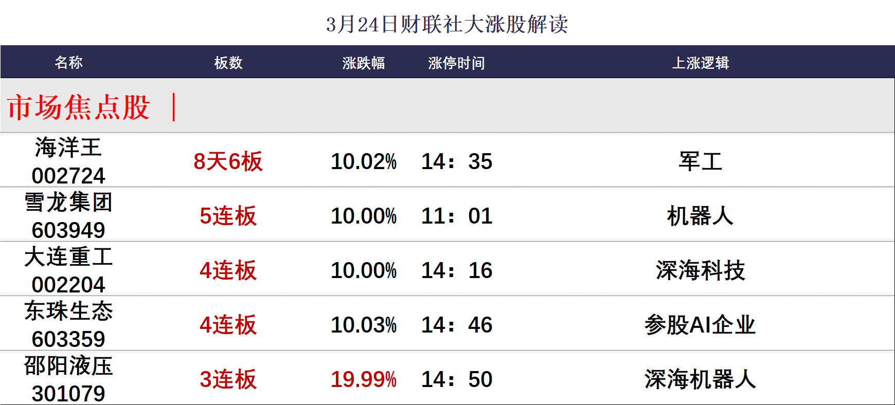 今日共49股涨停,连板股总数12只,24股封板未遂,封板率为67%(不含ST股、退市股)。焦点股方面,海洋王、雪龙集团双双上演“地天板”,深海机器人概念股邵阳液压20CM3连板。短线行情依旧低迷,全市场超30股跌停,其中襄阳轴承、国脉科技、福鞍股份、奇精机械等人气股2连跌停。