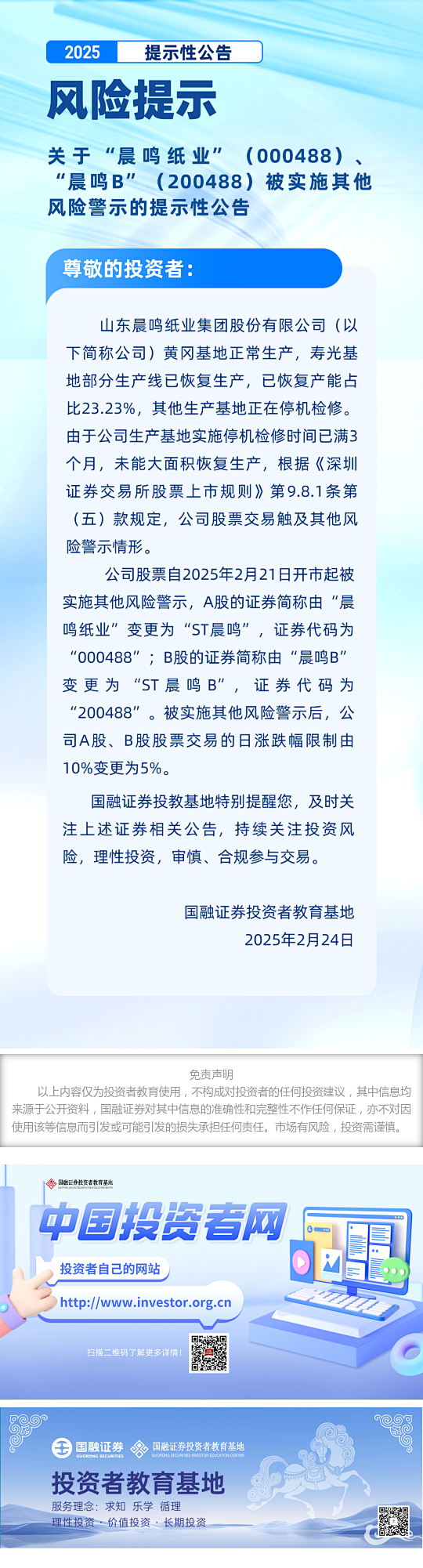 风险提示丨关于“晨鸣纸业”(000488)、“晨鸣B”(200488)被实施其他风险警示的提示性公告