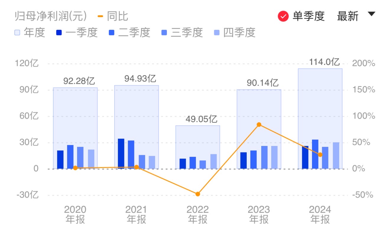 财联社3月27日电,潍柴动力(000338.SZ)公告称,2024年实现营业收入2156.9亿元,同比增长0.81%;归属于上市公司股东的净利润114.03亿元,同比增长26.51%。公司拟每10股派发现金红利3.47元(含税)。小财注:Q3净利24.98亿元,据此计算,Q4净利30.02亿元,环比增长20.21%。