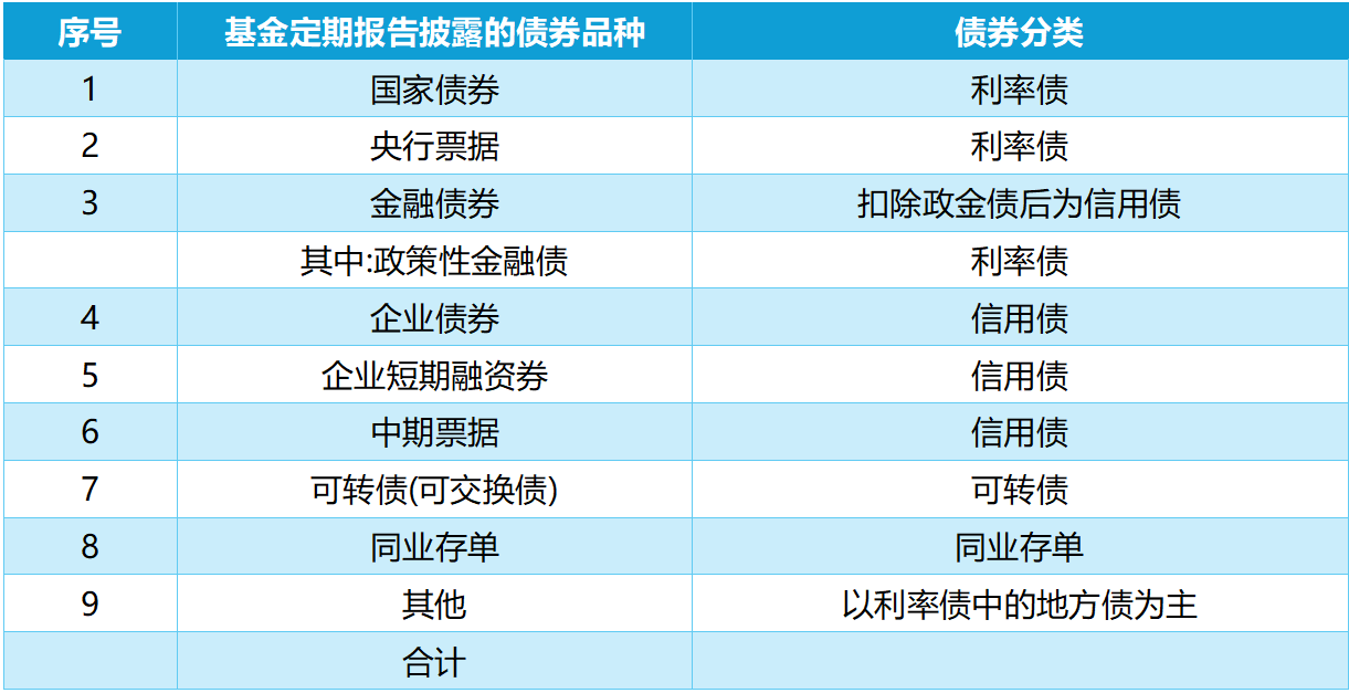 如果我们想要观察债基在某一报告期末的总体持仓结构,更为客观的方法是直接观察基金定期报告中的“期末按债券品种分类的债券投资组合”一项,可以根据下面的表格大致计算不同类别的债券的占比,而不能仅凭借前五大持仓做判断。