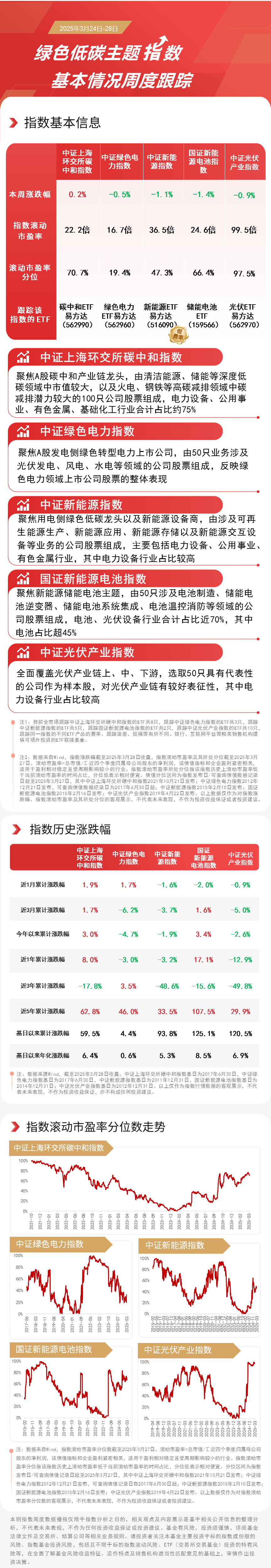 本周中证上海环交所碳中和指数上涨0.2%,中证绿色电力指数下跌0.5%,中证光伏产业指数下跌0.9%,中证新能源指数下跌1.1%,国证新能源电池指数下跌1.4%。