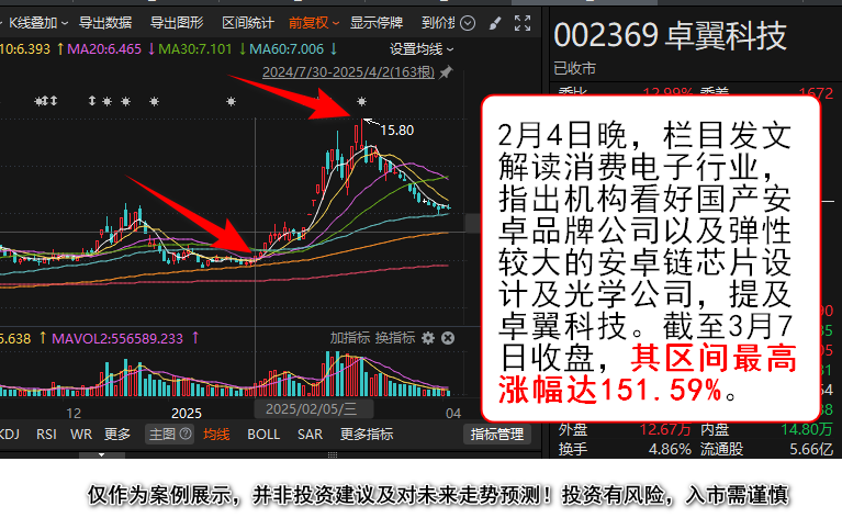 在此环境下,优秀的复盘工具,恰能在行情波动中为投资者保驾护航,在调整期规避更多的风险,在反弹时前瞻强势题材。本栏目精心打造「大头条」「市场大热点」「趋势追踪」「公司要闻精选」「主力买什么」5大模块,多方位满足投资者每日复盘需求,用心筛选高价值资讯。一季度中,栏目深入科技板块及消费电子等众多景气细分领域里,梳理了多家行业优质上市公司,其股价在短、长期维度均收获显著涨幅,其中不乏栏目梳理后区间涨幅超151%的卓翼科技以及3日最高涨幅超61%的蜂助手等明星公司。接下来,让我们一同回顾下栏目的精彩数据表现。