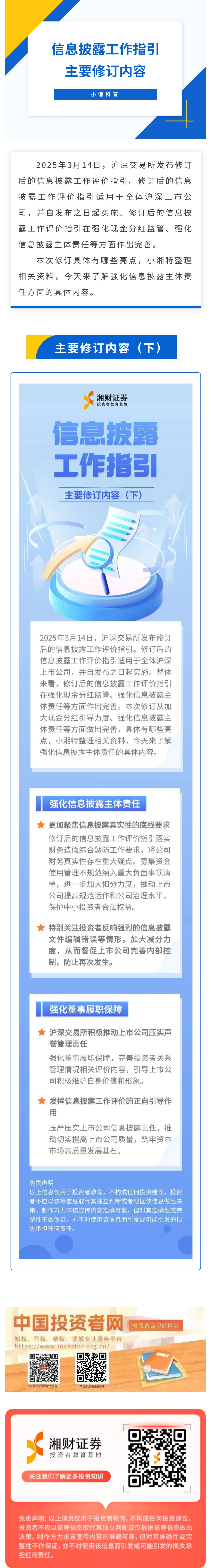 【小湘科普】信息披露工作指引主要修订内容(下):强化信息披露主体责任