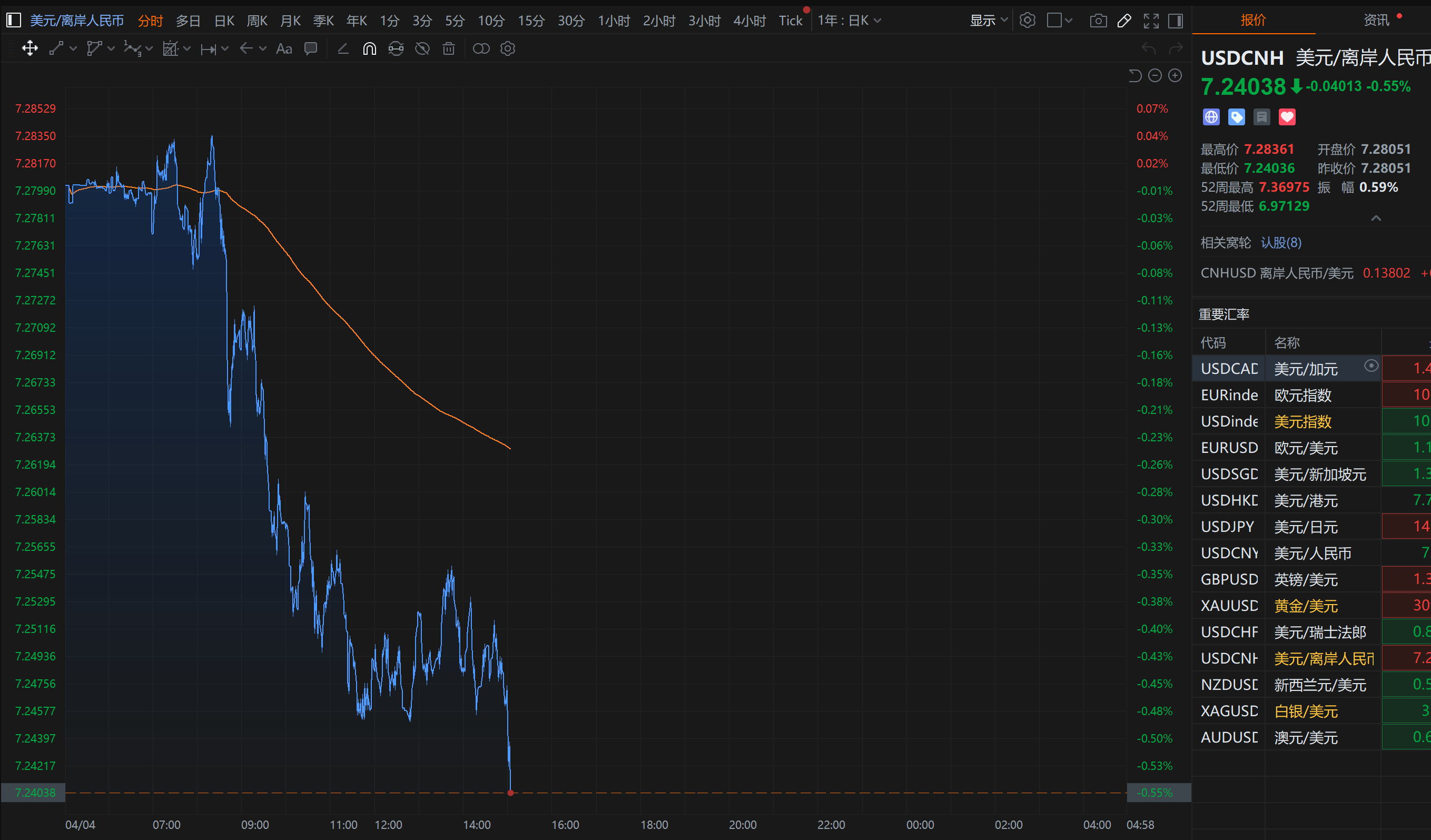 财联社4月4日电,离岸人民币兑美元上涨0.5%至7.2437。