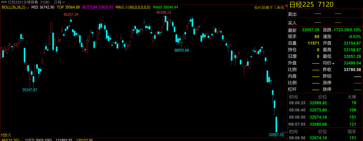 财联社4月7日电,日经225指数跌幅扩大至超5%。日经225指数较去年12月高点下跌20%。