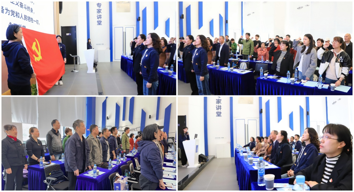 紧接着,党员们整齐列队,面对鲜红的党旗,庄严地重温入党誓词。誓言字字铿锵有力,句句掷地有声,表达了大家不忘初心、牢记使命的坚定信念和决心。
