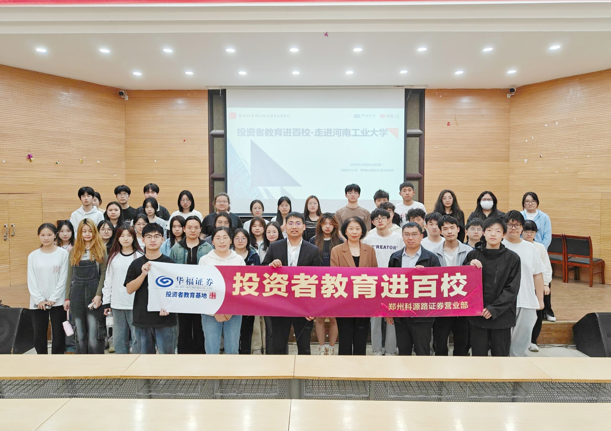 为积极响应“投资者教育进百校”的活动倡议,深入贯彻落实投资者教育纳入国民教育体系的战略部署,助力大学生群体了解金融市场,3月25日,华福证券郑州科源路证券营业部携手河南工业大学共同举办主题为“金融知识普及与风险防范”的投资者教育进百校投教宣传活动,本次活动吸引了近50名教师和学生现场参与。