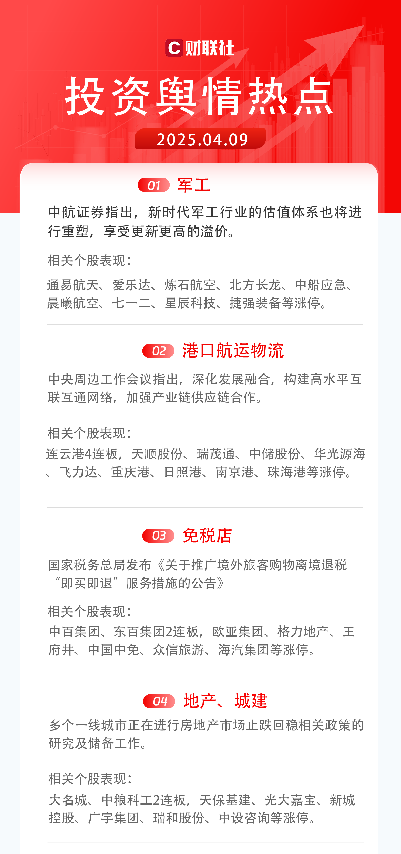 4)地产、城建:多个一线城市正在进行房地产市场止跌回稳相关政策的研究及储备工作。