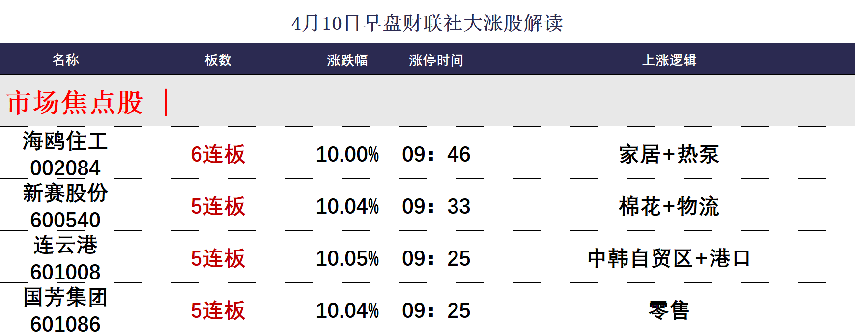 4月10日午间涨停分析