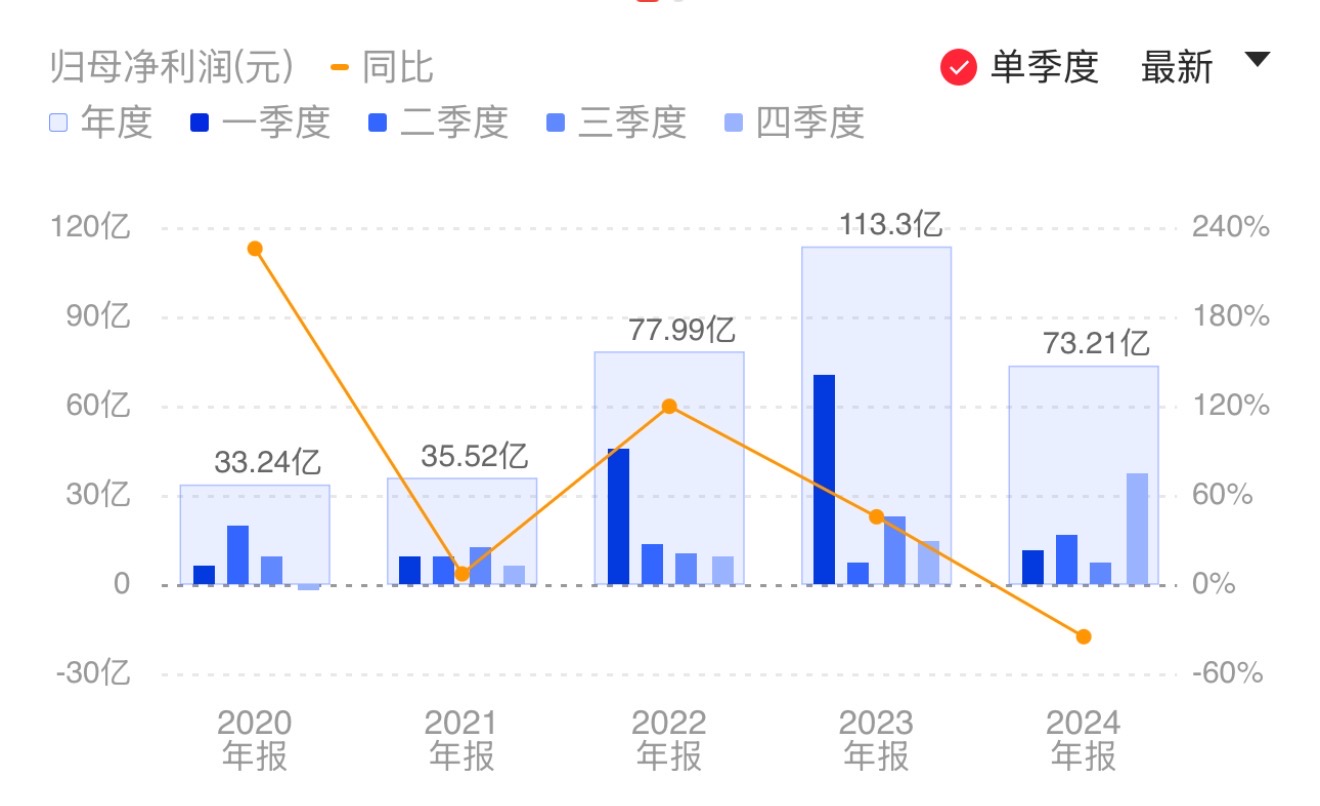财联社4月10日电,长安汽车(000625.SZ)公告称,2024年实现营业收入1597.33亿元,同比增长5.58%;净利润73.21亿元,同比下降35.37%。公司拟每10股派发现金红利2.95元(含税)。小财注:2024年Q3净利7.48亿元,据此计算,2024年Q4净利37.42亿元,环比增长400.13%。