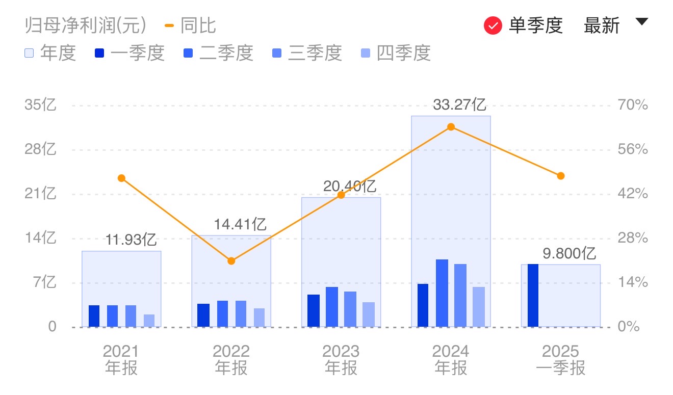 财联社4月15日电,东鹏饮料(605499.SH)公告称,2025年第一季度营业收入为48.48亿元,同比增长39.23%;归属于上市公司股东的净利润为9.8亿元,同比增长47.62%。经营活动产生的现金流量净额为6.31亿元,同比下降26.53%,主要系春节备货上年末预收账款较多,同时本期支付的年终奖及各项税费较上年同期增加所致。小财注:2024年Q4净利6.19亿元,据此计算,Q1净利环比增长58.24%。