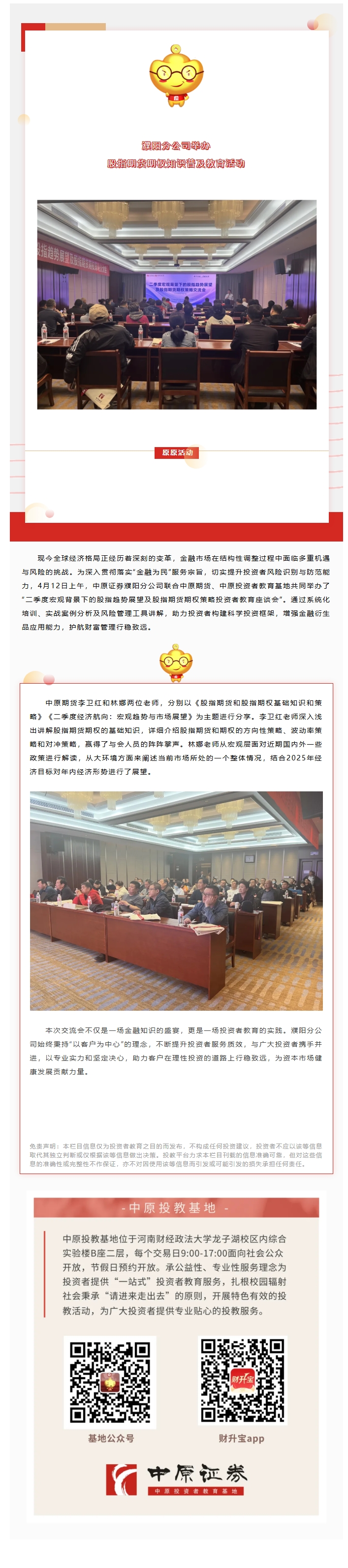 原原活动 | 中原证券濮阳分公司举办股指期货期权知识普及教育活动