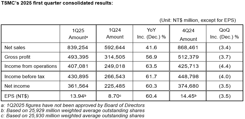 台积电第一季度净利润3616亿元台币 同比增长60%
