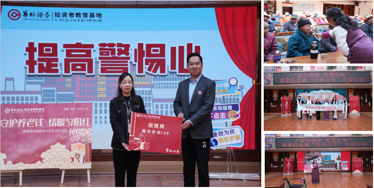 2025年4月18日,恰逢"415全民国家安全教育日"之际,华林证券与财联社在拉萨市社会福利院(雪新村)举办了养老院金融"防非反诈"关爱行动。活动以"守护养老钱·情暖夕阳红"为主题,为70余名老年居民带去金融安全知识和温暖关怀。