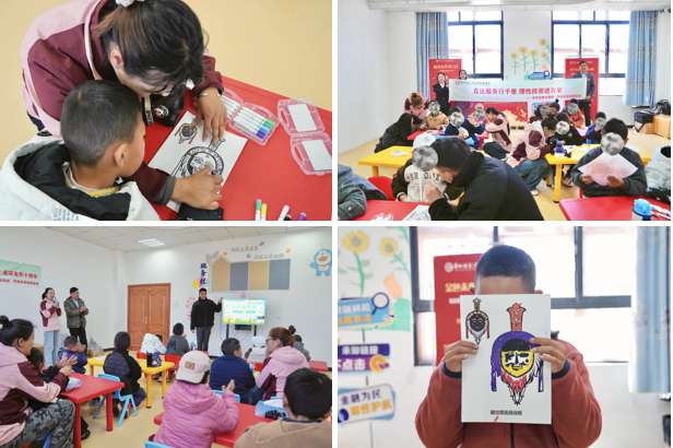 活动的最大亮点是藏戏面具彩绘互动环节。工作人员为每位孩子发放了藏戏面具模板和彩笔套装,引导孩子们在面具上涂抹不同颜色,每种颜色都寓意深刻:蓝色额头代表智慧和远见,象征储蓄的重要性;红色眼睛代表观察力和辨别能力,象征消费的明智;金黄嘴巴代表珍贵的品格和言语的力量,象征分享的快乐;绿色脸颊代表生命力和成长,象征劳动的价值。