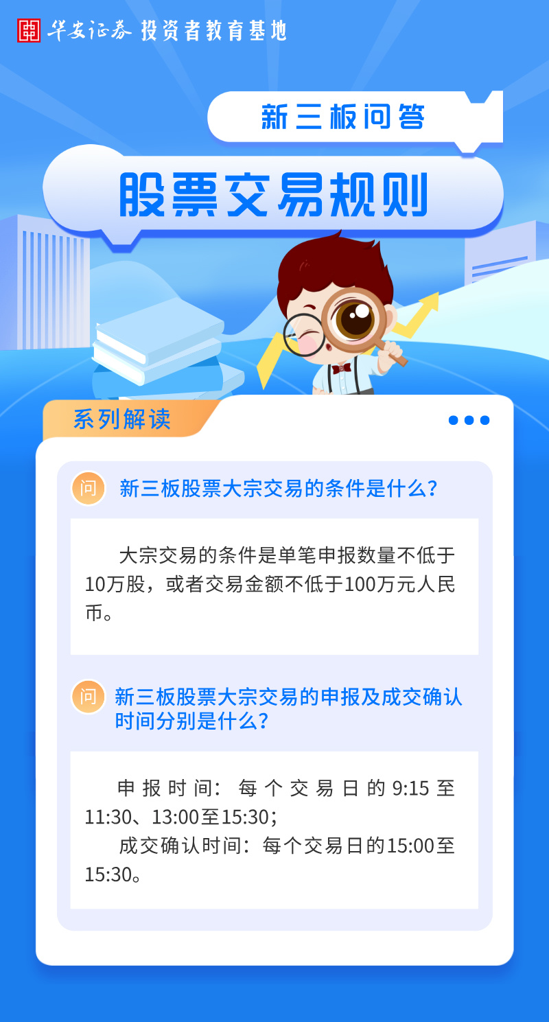 华小安惠学习 | 新三板股票交易规则问答:新三板股票大宗交易的条件、申报及成交确认时间