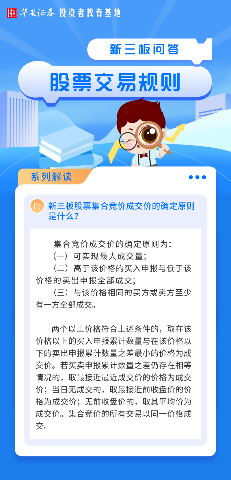 华小安惠学习 | 新三板股票交易规则问答:新三板股票集合竞价成交价的确定原则是什么?
