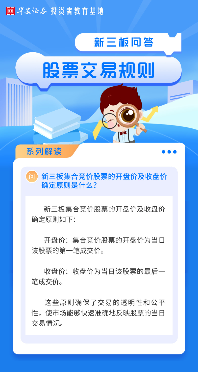 华小安惠学习 | 新三板股票交易规则问答:新三板集合竞价股票的开盘价及收盘价确定原则是什么?