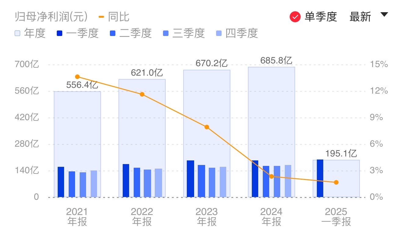 财联社4月29日电,中信银行(601998.SH)发布2025年第一季度报告,营业收入517.70亿元,同比下降3.72%,归属于本行股东的净利润195.09亿元,同比增长1.66%。小财注:2024年Q4净利167.5亿元,据此计算,Q1净利环比增长16.47%。