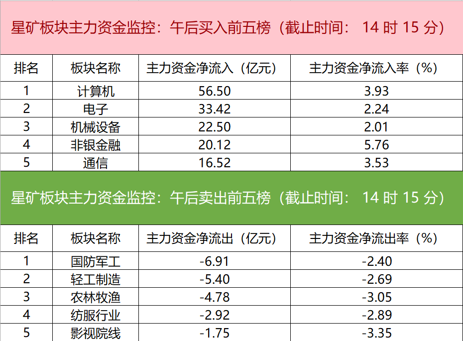 主力资金监控:计算机板块净流入超56亿