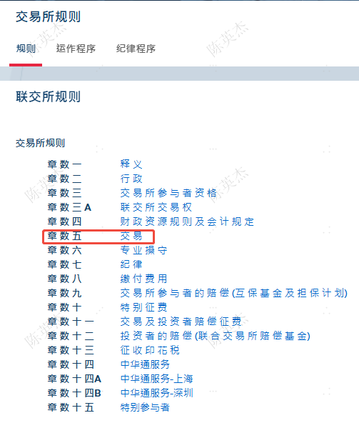 其中,第五章“交易”就是我们需要寻找的官方交易规则文件。