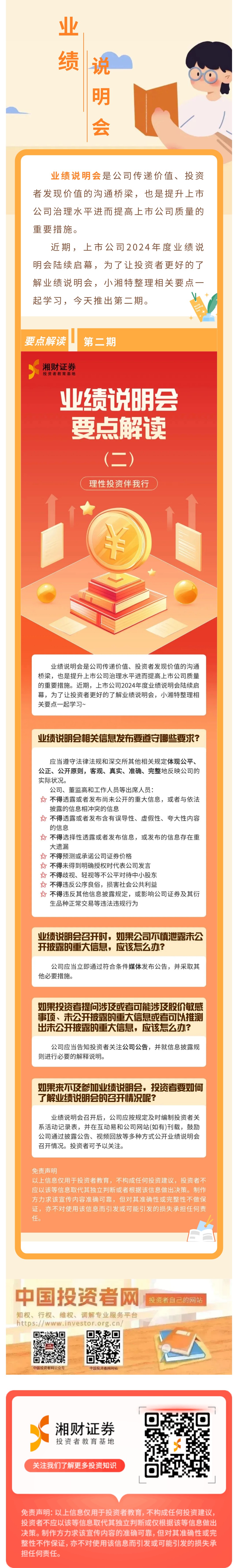【 理性投资伴我行|小湘科普 】业绩说明会要点解读(二)