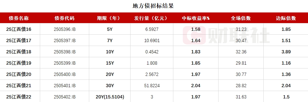 江西省七期地方债已结束招标 全场倍数均在28倍以上