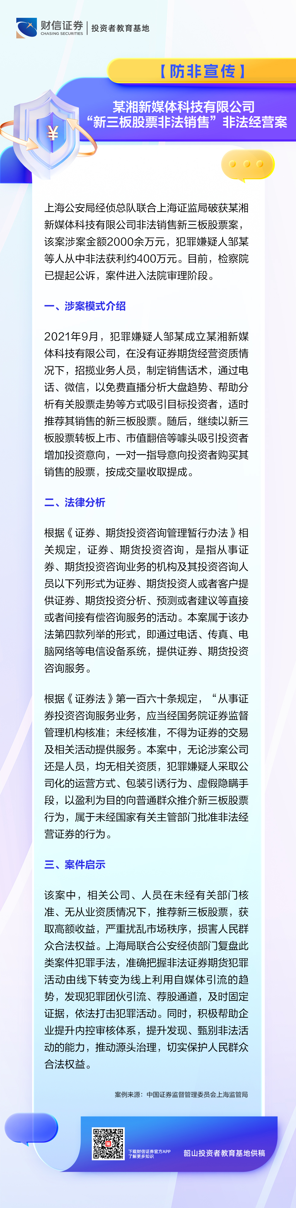 【免责声明:本栏目仅为投资者教育目的而发布,不构成任何投资建议。投资者不应以该等信息取代其独立判断或仅根据该等信息做出决策。财信证券投教基地力求所涉信息准确可靠,但对这些信息的准确性、完整性和及时性不作保证,亦不对因使用该等信息而引发的损失承担任何责任。】