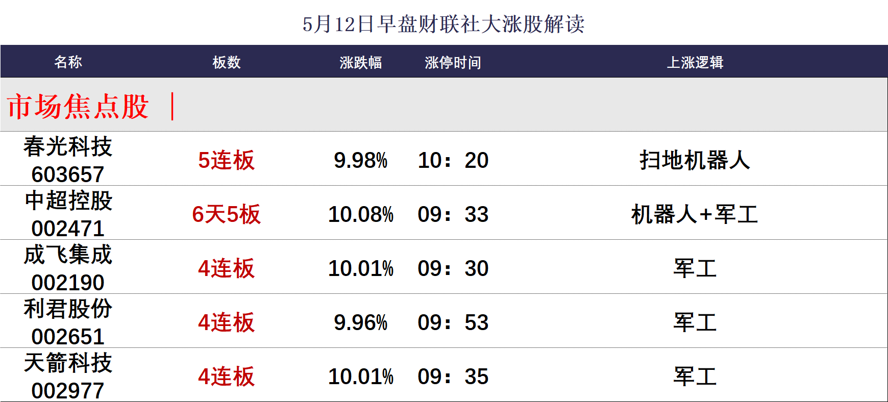 5月12日午间涨停分析