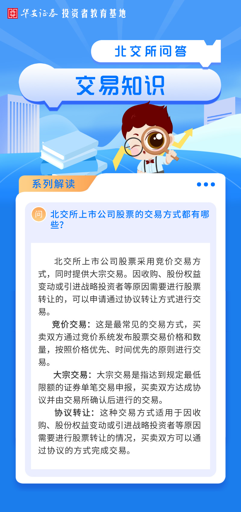 华小安惠学习 | 北交所交易知识问答:北交所上市公司股票的交易方式都有哪些?