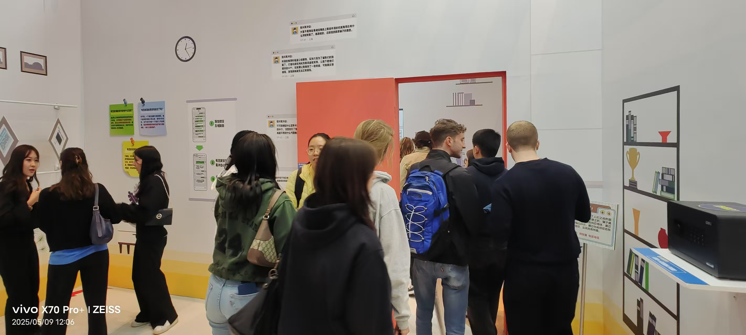 随后,ESCP学子们来到了公司金融风险防范主题“集装箱”投教基地,集装箱宛如一个“微缩金融世界”,以当下颇受欢迎的密室逃脱形式,精心构建了多个高度还原现实的金融场景:“专家” 用专业术语包装高风险项目;“客服” 以诱人的高收益为噱头推荐理财产品,“朋友” 热情分享看似稳赚不赔的 “投资经验”…… 真假难辨的角色互动,让学子们仿佛置身真实金融市场,工银瑞信工作人员以流畅的英文,热情洋溢地介绍集装箱的设计理念、游戏规则,期间,双方围绕场景中的风险防范要点、市场监管等内容展开深入讨论,现场交流氛围热烈。