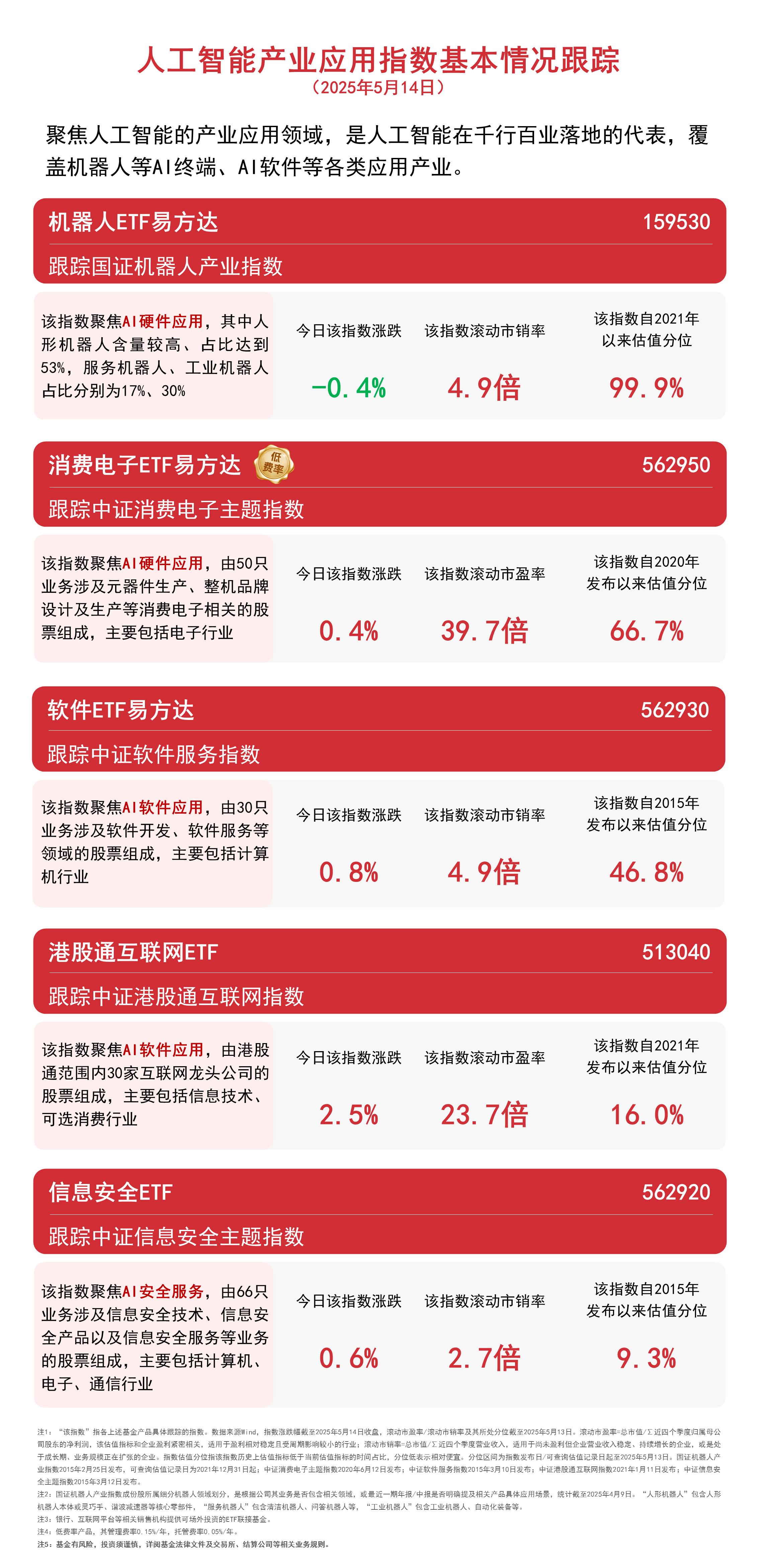 机器人ETF易方达(159530)跟踪的国证机器人产业指数中,人形机器人相关个股占比超50%,“人形含量”在所有ETF跟踪的指数中排名第一,可助力投资者布局产业发展机遇。
