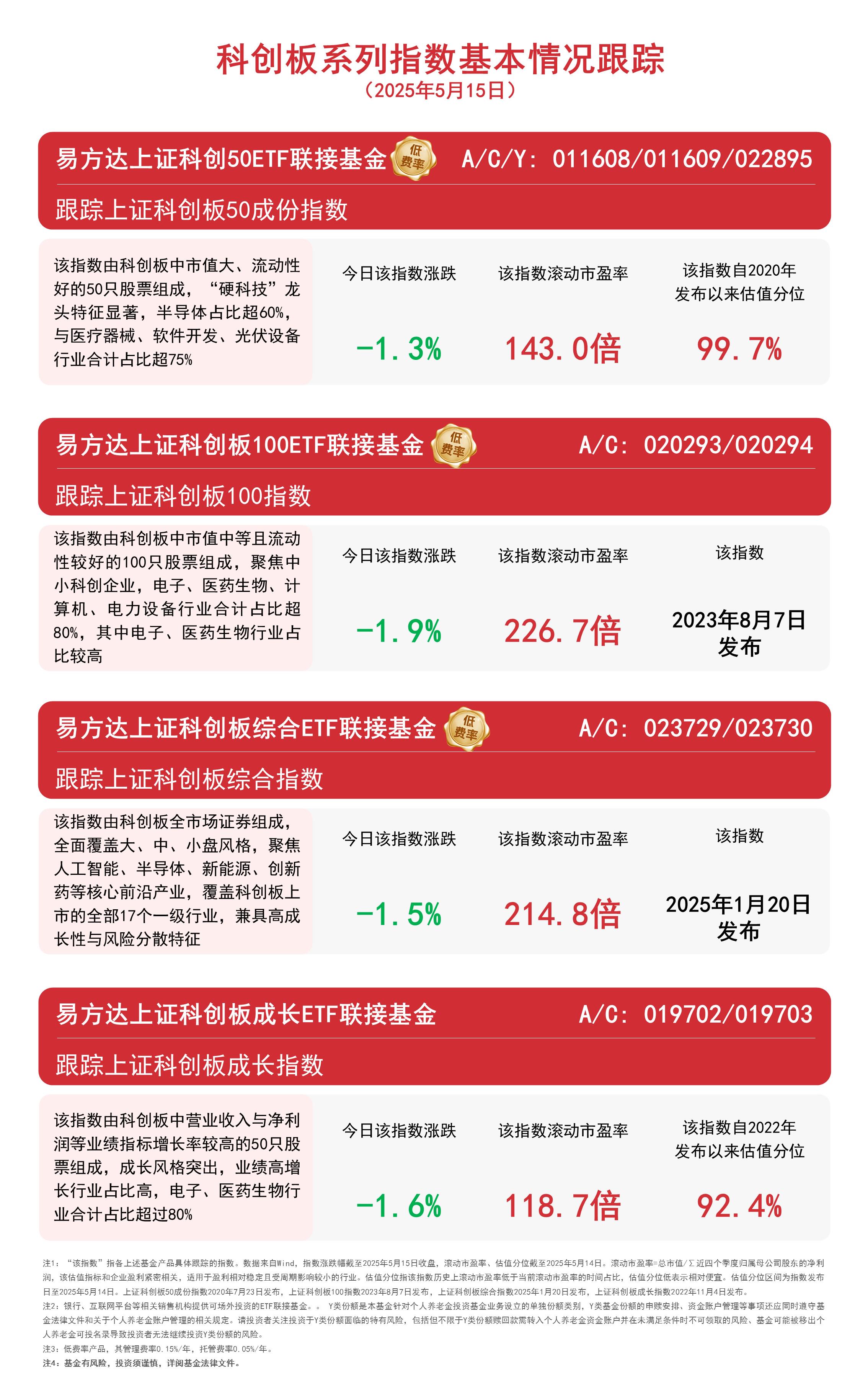截至收盘,上证科创板50成份指数下跌1.3%,科创综指下跌1.5%,上证科创板成长指数下跌1.6%,科创100指数下跌1.9%。