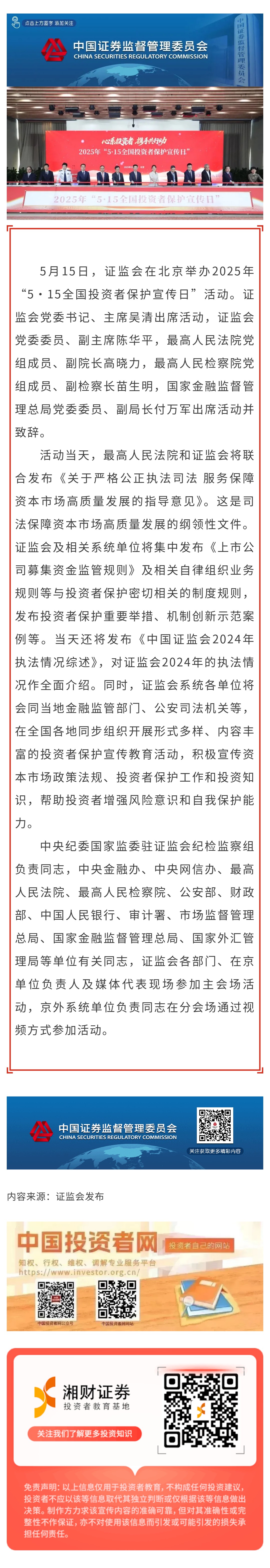 【证监会发布】证监会举办2025年“5·15全国投资者保护宣传日”活动