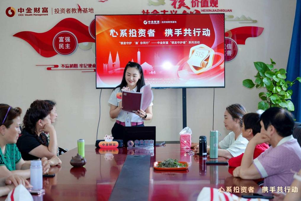 为深入贯彻落实中央金融工作会议关于做好养老金融等“五篇大文章”的重要部署,践行以人民为中心的价值取向,中国中金财富证券有限公司(以下简称“中金财富”)精心策划了2025年“5·15全国投资者保护宣传日”系列活动。5月14日下午,中金财富走进重庆市鸳鸯街道社区养老服务中心,开展“银发守护‘渝’你同行”——“银发守护者”系列行动,切实加强老年群体金融安全防护。活动吸引了近80位社区老年人积极参与,现场气氛温馨热烈。
