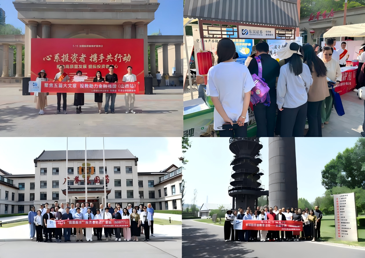 在“5·15 全国投资者保护宣传日”这一重点宣传窗口期,东吴证券携手财联社共同开展了“聚焦五篇大文章,投教助力金融强国”(山西站)系列投教活动。活动期间,通过设立创意投教集市以集章打卡等社会大众喜闻乐见的方式激发投资者参与热情;通过带领投资者走进上市公司广誉远、太钢不锈,为上市公司与投资者搭建多元化沟通平台,提振投资者信心,积极营造理性投资、价值投资、长期投资的市场氛围;通过参观日昇昌票号重走总书记路线,寻迹晋商精神。