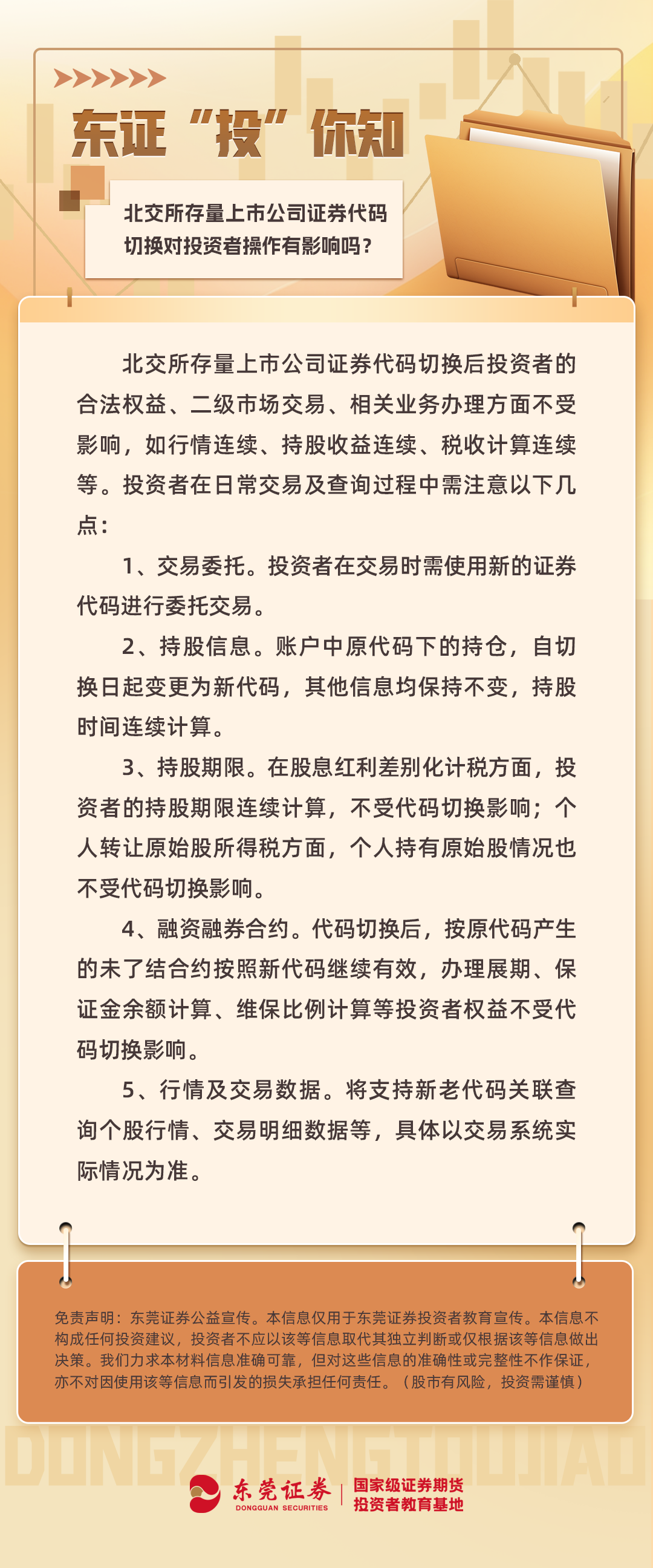 【5·15】东证“投”你知|北交所存量上市公司证券代码切换对投资者操作有影响吗?