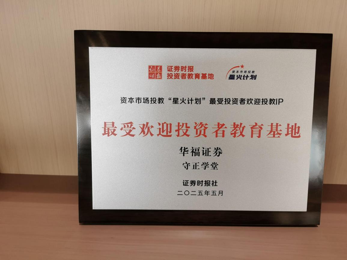 华福证券荣获“最佳活动组织机构”,华福证券国家级投资者教育基地——守正学堂获评“最受欢迎投资者教育基地”,华福证券福州上三路证券营业部高翃入选“星火计划”首批20名讲师库。
