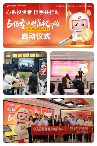 5月15日,协会联合方正证券举行“心系投资者,携手共行动——5·15方小牛维权行动”启动仪式。线上通过方正证券小方直播平台同步直播,线下以方正证券投资者教育基地为主会场,在全国300多家分支机构设立视频分会场组织投资者观看,线上线下共计5万多名投资者参与。启动仪式上,启动仪式揭晓了5·15“全民投保达人”作品挑战赛获奖作品,并发布了《投资马拉松》投资者维权系列视频的后4期,旨在以马拉松赛事比喻维权过程,帮助投资者理解维权制度和案例。协会刘丹岳秘书长进行了《新形势下的投资者保护》授课,解读了全面注册制下的投资者保护要求及维权路径,并分享了典型案例,聚焦“理性投资”“依法维权”两大重点,向投资者普及依法行权、维权的渠道和方法,引导投资者树立正确的投资观念。