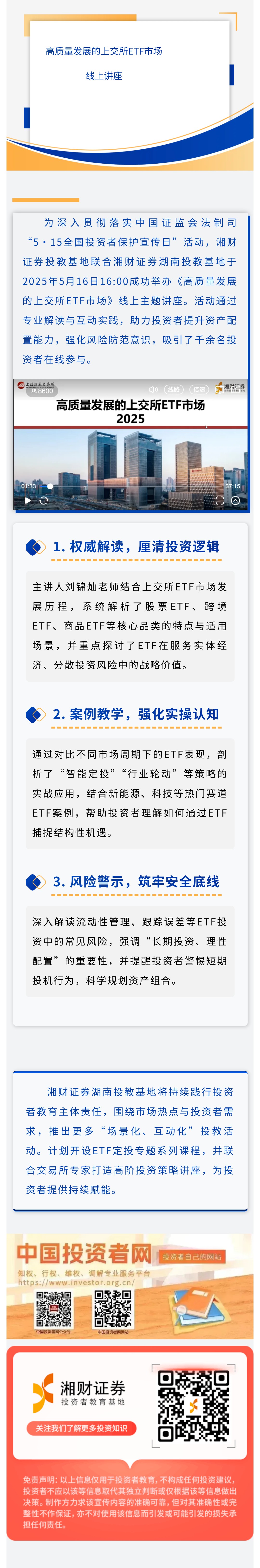 【5·15专栏|分支风采】高质量发展的上交所ETF市场线上讲座直播总结