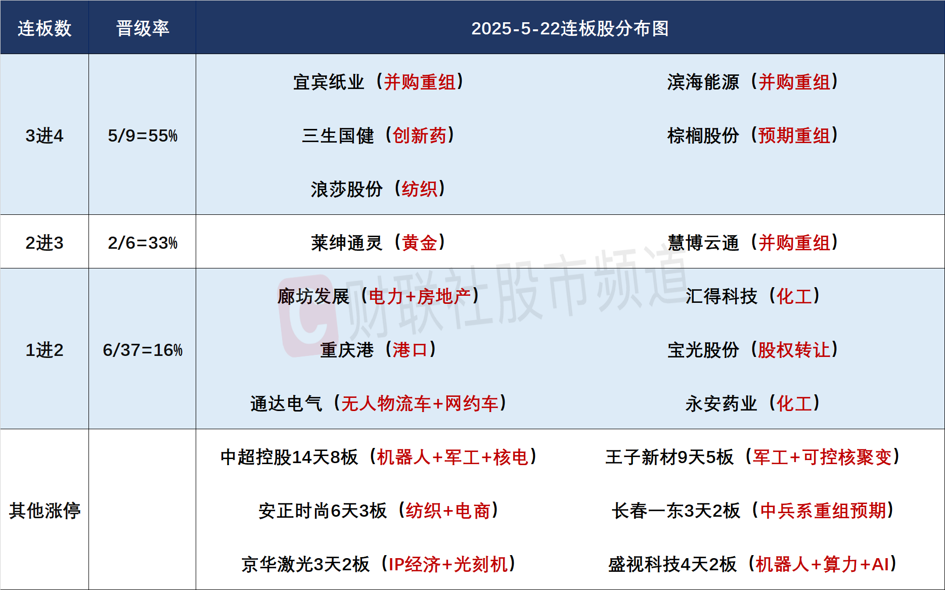 今日共40股涨停,连板股总数13只,其中三连板及以上个股7只,上一交易日共18只连板股,连板股晋级率38.89%(不含ST股、退市股)。个股方面,全市场超4400只个股下跌,高位股遭重挫,锦波生物、江天化学跌超10%,苏州龙杰、中毅达、红墙股份等跌停。郑中设计、丽人丽妆均断板,市场连板高度被压缩至4板。板块方面,三生国健走出20CM4连板,带动创新药概念反复走强,亚虹医药、迈威生物涨超10%;军工板块获资金回流,国科天成20CM涨停,海特高新、四创电子、烽火电子等军工电子股涨停,机构研报指出,二、三季度军工电子有望迎来整体行业订单恢复。