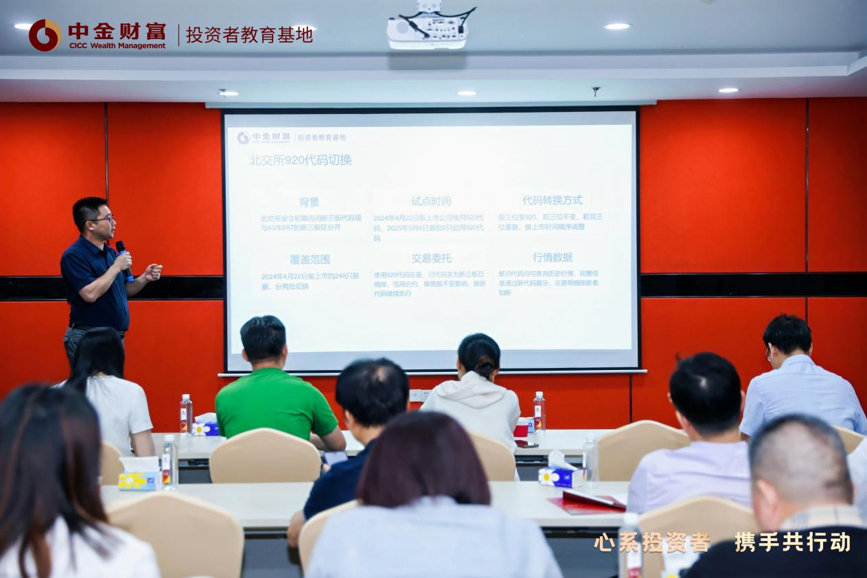 为深入贯彻落实中央金融工作会议关于做好金融“五篇大文章”的重要部署,践行以人民为中心的价值取向,5月16日下午,中金财富携手北京证券交易所,深圳市证券业协会,在深圳北交所投资者服务e站,举办“北交所投教大讲堂:直达服务行千里 理性投资进万家”主题投教活动。