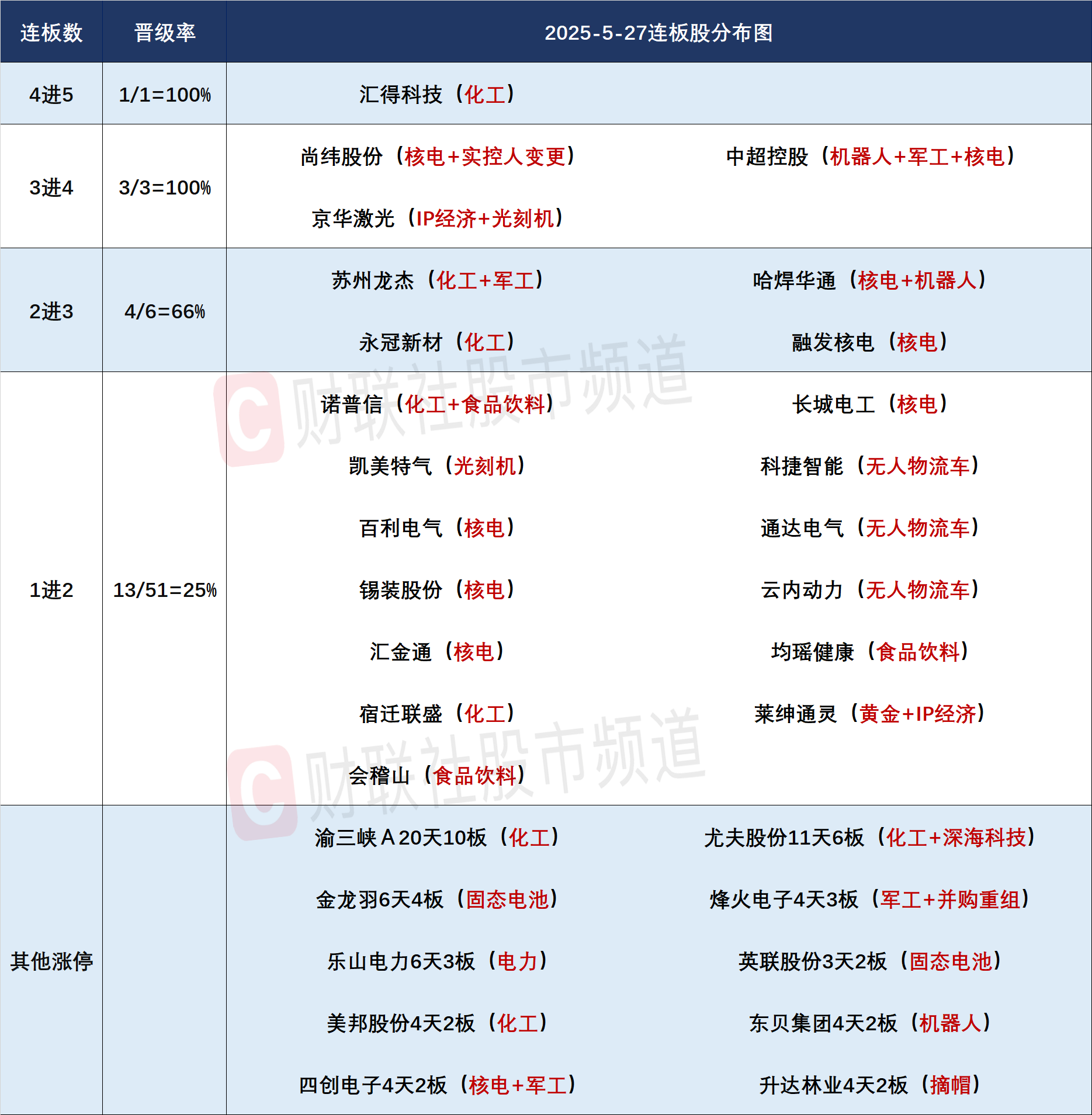 今日共62股涨停,连板股总数21只,其中三连板及以上个股8只,上一交易日共10只连板股,连板股晋级率80%(不含ST股、退市股)。个股方面,高位抱团股强者恒强,中超控股走出17天11板晋级4连板,苏州龙杰走出13天9板晋级3连板,此外,渝三峡A、尤夫股份、乐山电力等一批高位股涨停。昨晚再度发布风险提示的中毅达也获得资金踊跃承接,仅收跌2.30%。板块方面,新消费板块全线爆发,IP经济分支京华激光、莱绅通灵双双收获6天5板,新饮品分支会稽山5天3板;午后以农药股为代表的化工板块走强,美邦股份、海利尔、广信股份、中旗股份等涨停,消息面上,山东高密友道化学一车间发生爆炸事故,相关农药产品替代企业受到市场关注。