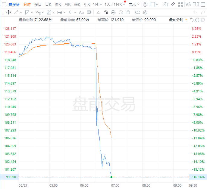 拼多多美股盘前大跌超16% 股价跌破100美元