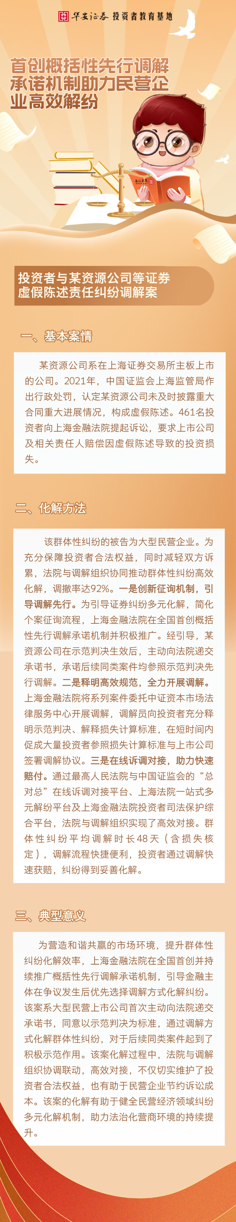 【防非宣传月】以案说法 | 首创概括性先行调解承诺机制助力民营企业高效解纷——投资者与某资源公司等证券虚假陈述责任纠纷调解案