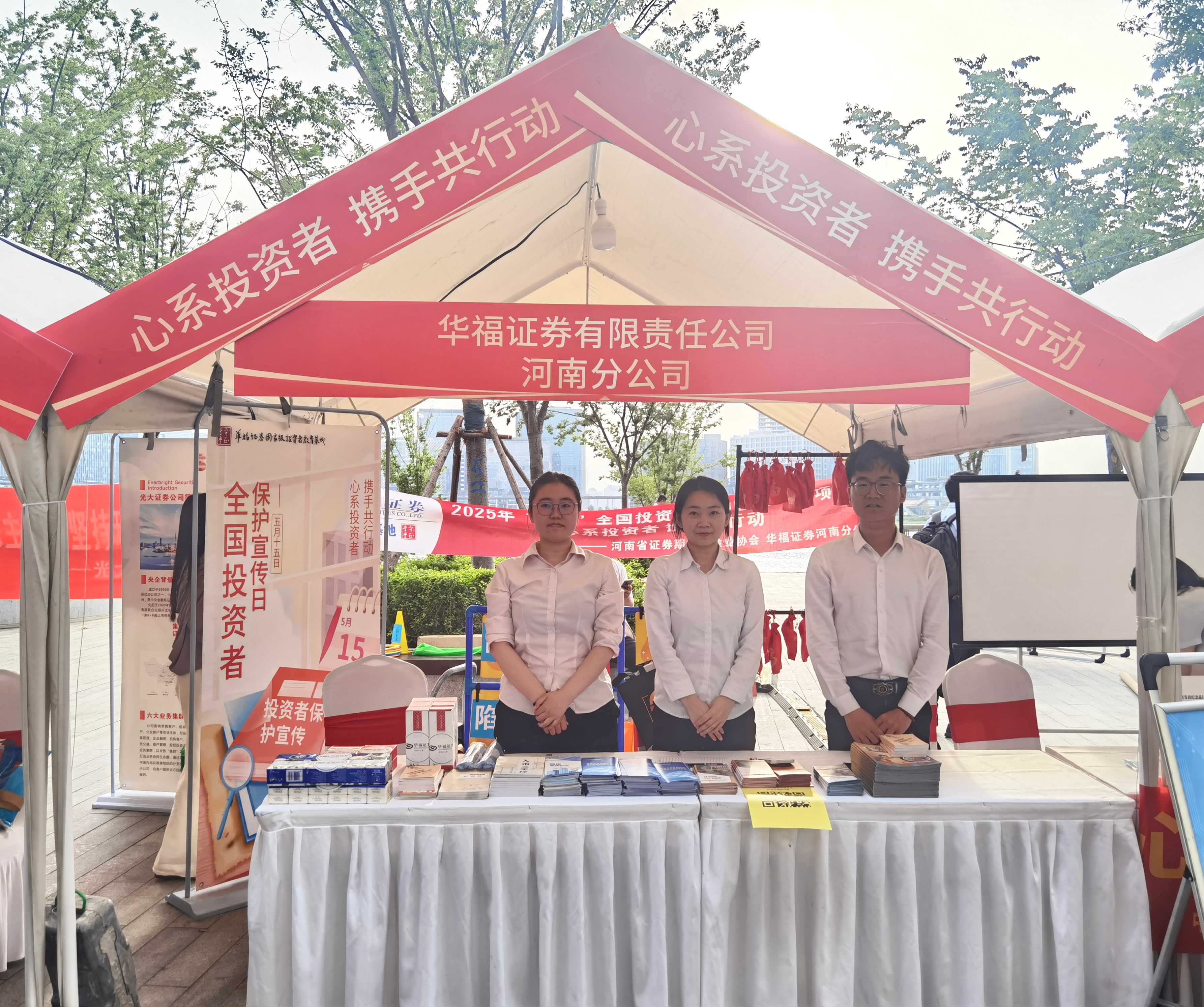 5月16日,华福证券河南分公司作为受邀会员单位参加了在郑州市郑东新区龙湖金融岛举行的“打卡金融岛 投教豫见你”主题活动。在活动现场通过邀请投资者参与小游戏、横幅展示、设立展板、发放宣传品等方式,向投资者宣传远离非法集资、辨别非法证券期货、投资者维权等内容,帮助投资者完成从"认知升级"到"行为矫正"的转变。