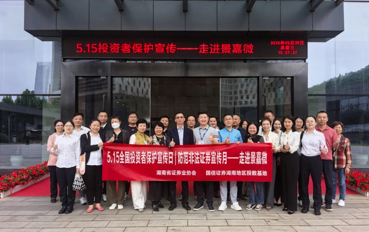 为推进金融创新“五篇大文章”,积极贯彻落实“新国九条”及其1+N政策,助推上市公司高质量发展,在湖南证监局指导下,湖南省证券业协会(以下简称“协会”)联合国信证券湖南投资者教育基地紧扣 "5・15 全国投资者保护宣传日" 主题,结合湖南辖区防非宣传专项活动,于5 月 28 日组织开展“走进景嘉微”投教行活动。本次活动吸引近30名高净值投资者参与,通过 "实地探访 + 投教赋能 + 风险警示" 三位一体模式,架起资本市场与实体企业的沟通桥梁。