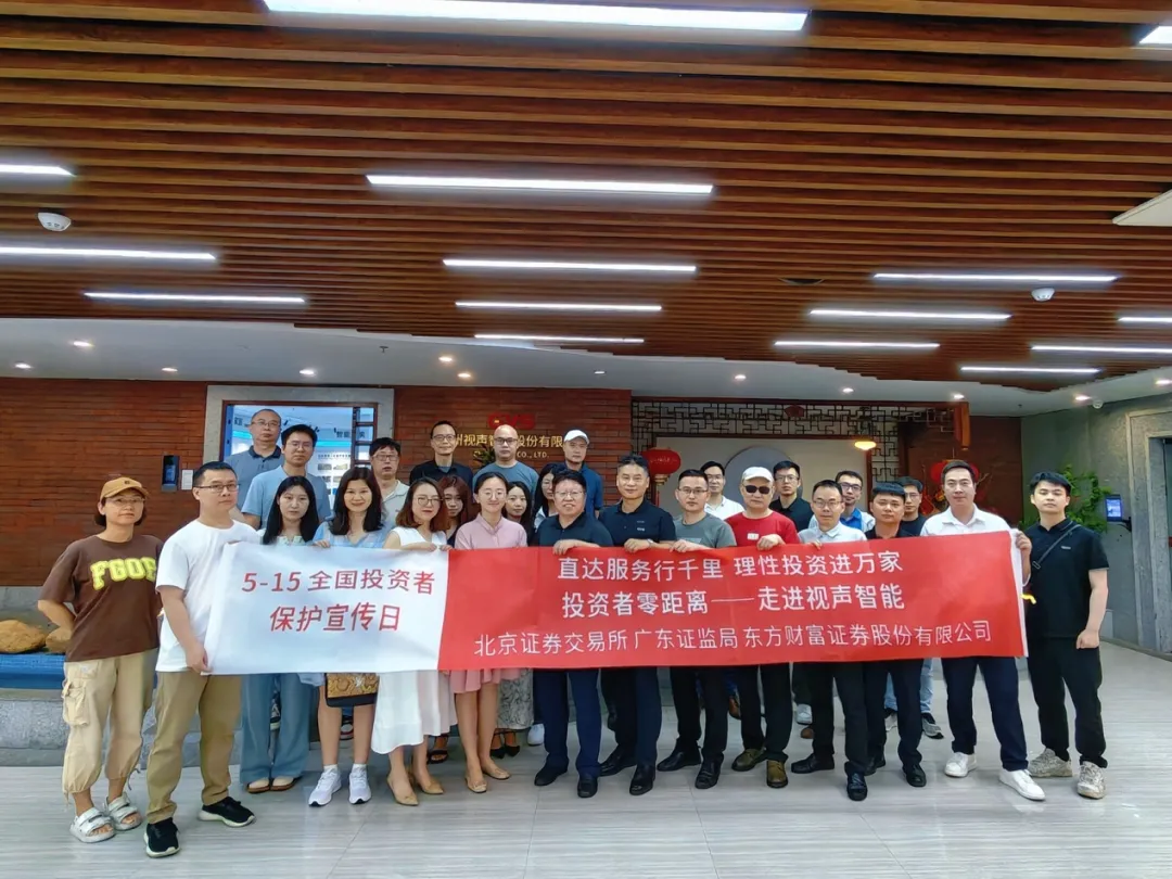 5月20日,北交所联合广东证监局、东方财富证券举办“投资者零距离”——走进视声智能活动,带领机构投资者、中小投资者现场参访上市公司。活动中,公司高管带领投资者参观了企业发展历程展示区、智能展厅和生产办公区,详尽介绍公司的业务布局、财务表现、技术创新成果及产品生态体系,向投资者清晰展现了公司的成长轨迹和发展潜力。互动交流环节,针对投资者关心的战略规划、风险管控、分红政策、可持续发展等问题,公司管理层给予了详尽解答。本次活动通过“实地参访+专业讲解+深度对话”的形式,有效搭建了投资者与上市公司的高质量沟通平台,帮助投资者深入了解上市公司内在价值,助力培养理性投资理念。